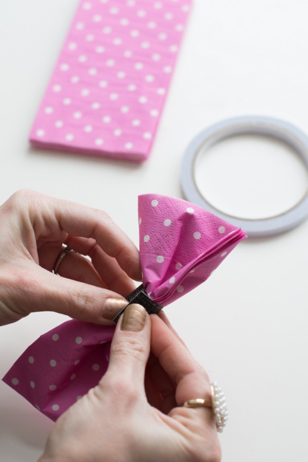Dépliez les extrémités de la serviette pour avoir une jolie forme de nœud papillon.